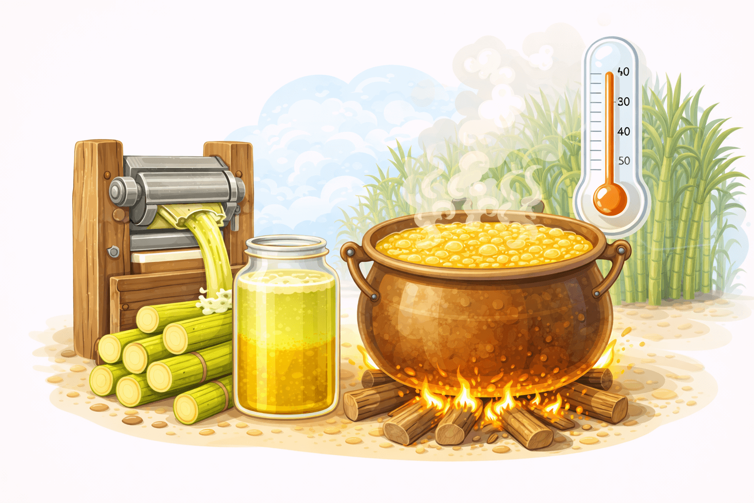 The juice is cooked slowly at controlled heat, allowing sweetness to develop without burning or over-processing.